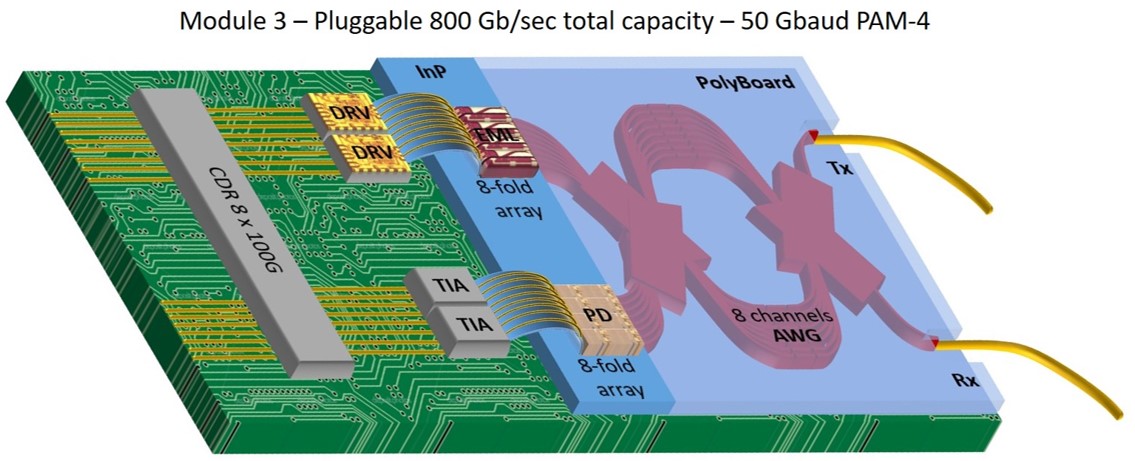 1. Develop EML arrays, PD arrays and polymer motherboards as the key optical components for Terabit transceivers supporting 100 Gb/s transmission per lane in the O-band