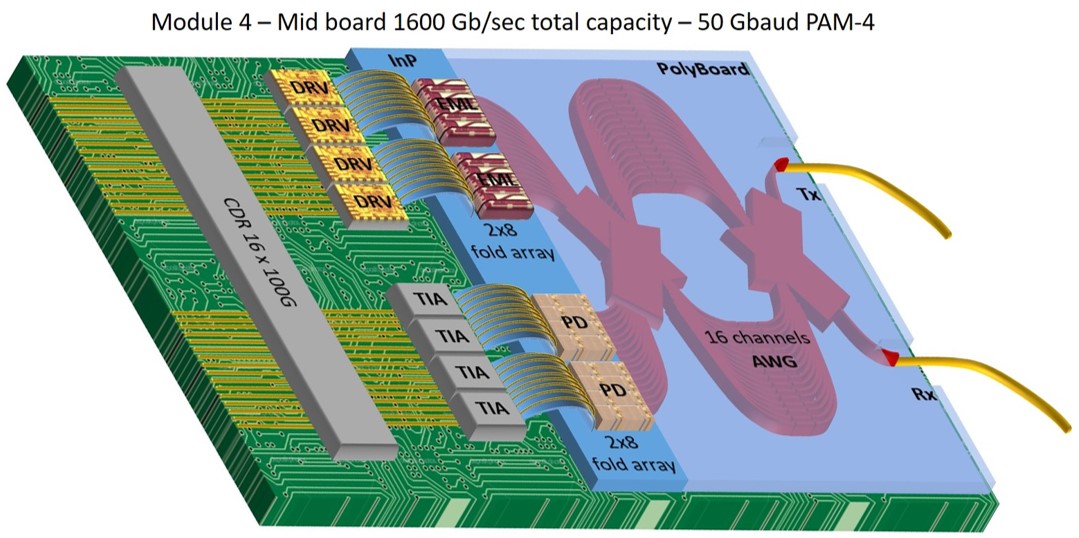 5. Develop small form factor pluggable and mid-board transceivers with 800 Gb/s and 1.6 Tb/s capacity for optical connectivity inside data center environments